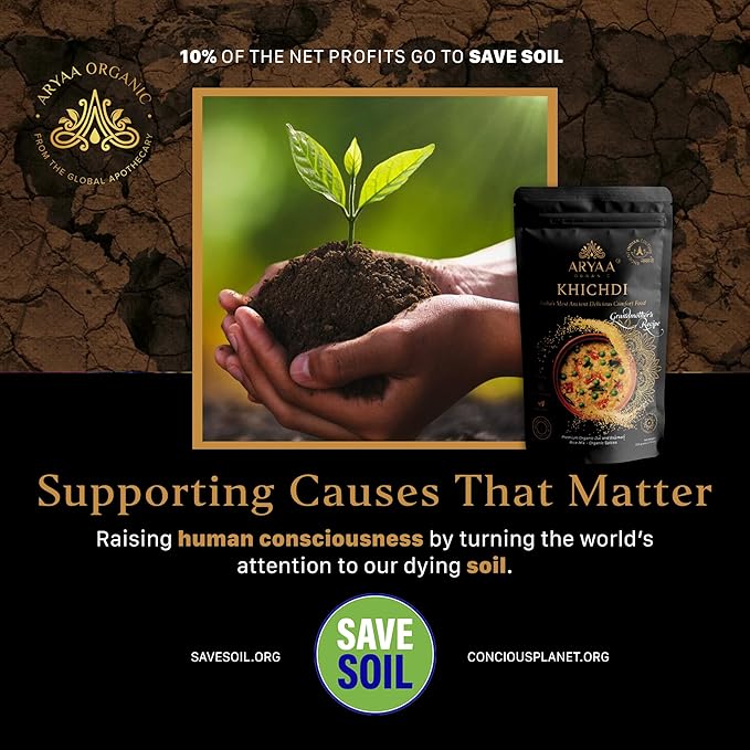 Aryaa Organic Khichdi 1.15lb (4 pack/220g) - Makes 16 Cups | Indian Risotto: Basmati Rice, Lentils & Spices, Organic, Gluten-Free, Non-GMO, Vegan, No Preservatives