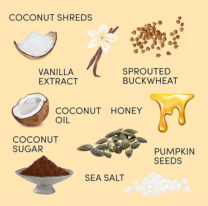 - PACKED WITH PROTEIN & FIBER – Each bite of Clusterbucks is packed with protein and fiber from nutrient-rich sprouted buckwheat (a plant-based source of complete protein!), providing a satisfying, wholesome snack that keeps you feeling full and energized throughout the day. Perfect for those looking for healthy snacks that nourish both body and soul.