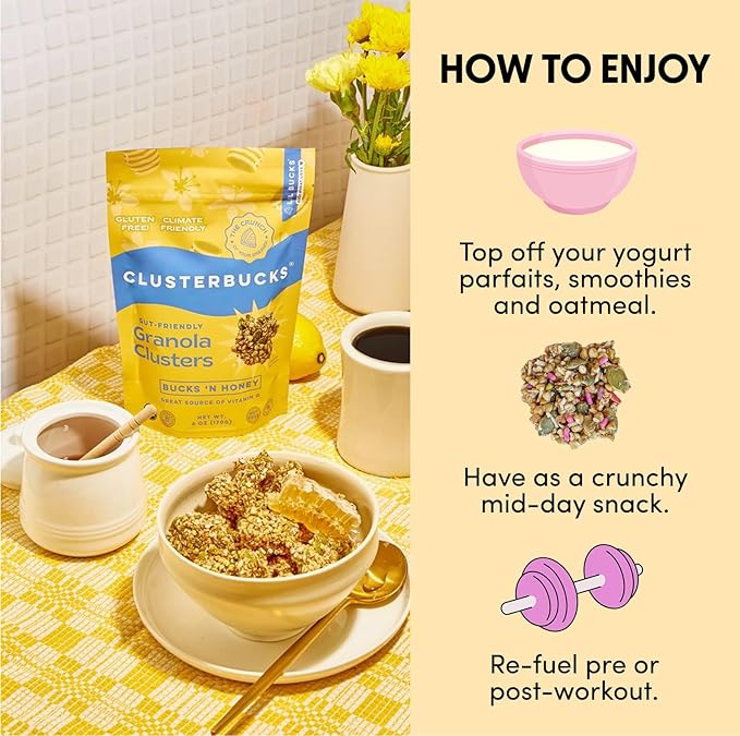 - HOW TO ENJOY - Add Clusterbucks to your morning smoothies, yogurt parfaits, and oatmeal, or grab them as a healthy snack while on the go. Pack them in your lunch bag or keep them as a crunchy snack on your hikes and other adventures.