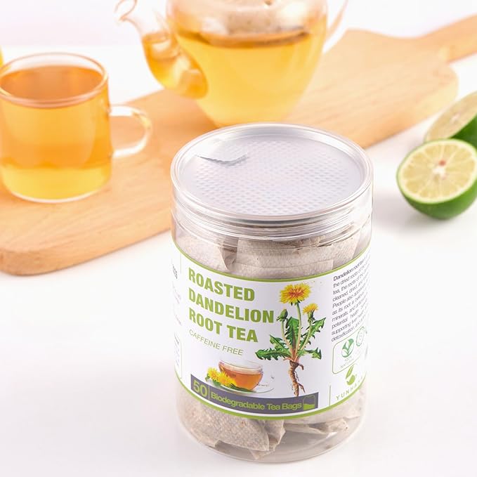- [ Sealed Easy-Open Can & Biodegradable Tea Bags ] : Our dandelion root tea organic are made of natural corn fiber, which is eco-friendly. They contain no strings, wrapping, staples, adhesive, bleach, or dyes - 100% safe. Each can contains 50 tea bags sealed for freshness, ensuring a delicious cup of herbal tea anytime. Just steep a bag in hot water and savor the smooth, comforting taste.