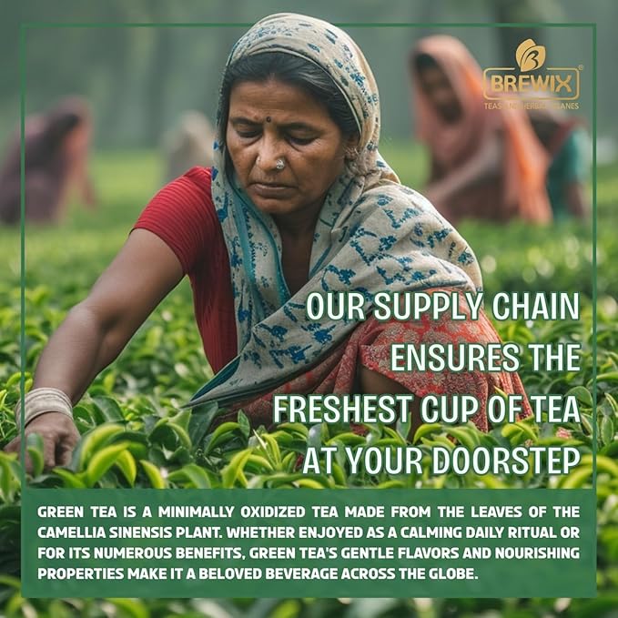 BREWIX, Green Tea Loose Leaf (50+ Cups, 3.53oz/100g) Gluten Free I High Elevation Grown Green Tea Leaves | Pure Single Origin Sourced Direct from India