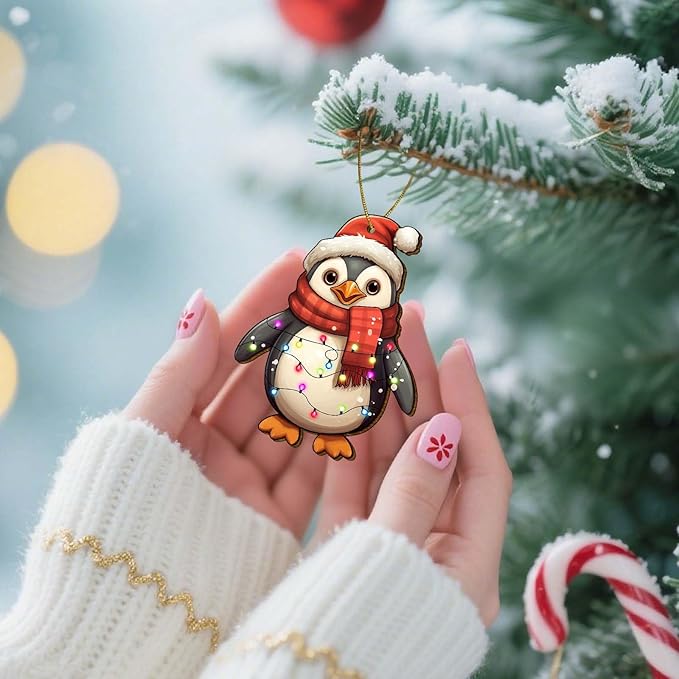 2 Side Printed Cute Penguin Wooden Christmas Ornaments 2025, Keepsake for Women, Men and Friends, Penguin Christmas Tree Ornaments, Christmas Tree Hanging Decorations