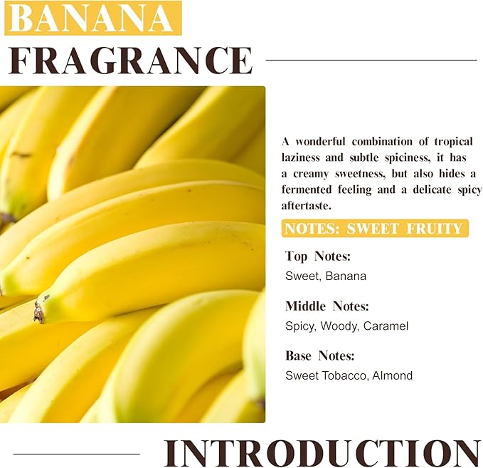 - 【Wonderful Scent】Banana fragrance oil is warm and sunny fruity scent reminds you of many beautiful things. It has a unique sweet smell of bananas as if there is a sense of relax, which can make people feel happy.