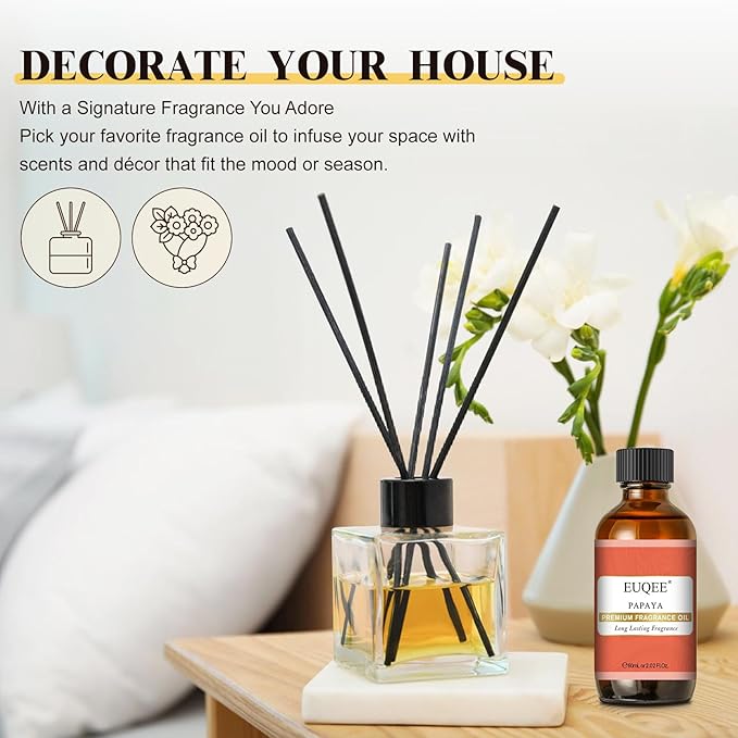 EUQEE Papaya Fragrance Oil, Premium Fragrance Essential Oil with Glass Dropper for Aromatherapy, Soap Candle Making - 2.02 Fl oz/ 60ml