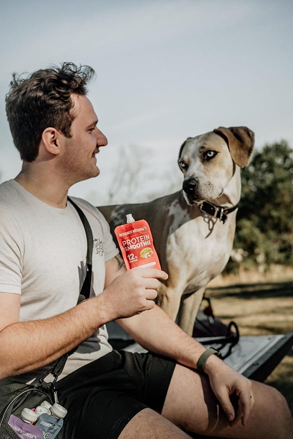 Designer Wellness Protein Smoothie, Real Fruit, 12g Protein, Low Carb, Zero Added Sugar, Gluten-Free, Non-GMO, No Artificial Colors or Flavors, Strawberry Banana, 24 Count