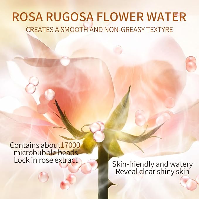 - Effect: Combine Rosa Rugosa Flower Water with Pro-Xylane and Hydrolyzed Pearl, rich in nutrients, relieves skin problems, nourishes and elastic, plump skin base.