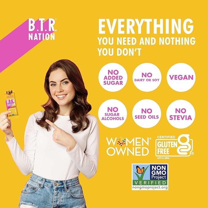 - ✅ NO JUNK, EVER. WE PROMISE: B.T.R. Bars are Non-GMO, Gluten-Free, Dairy-Free, and Soy-Free with a 100% Clean Label. No sugar alcohols, no stevia, no gums or emulsifiers, and no flavors (not even so-called “natural flavors”)