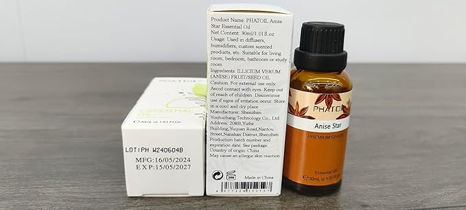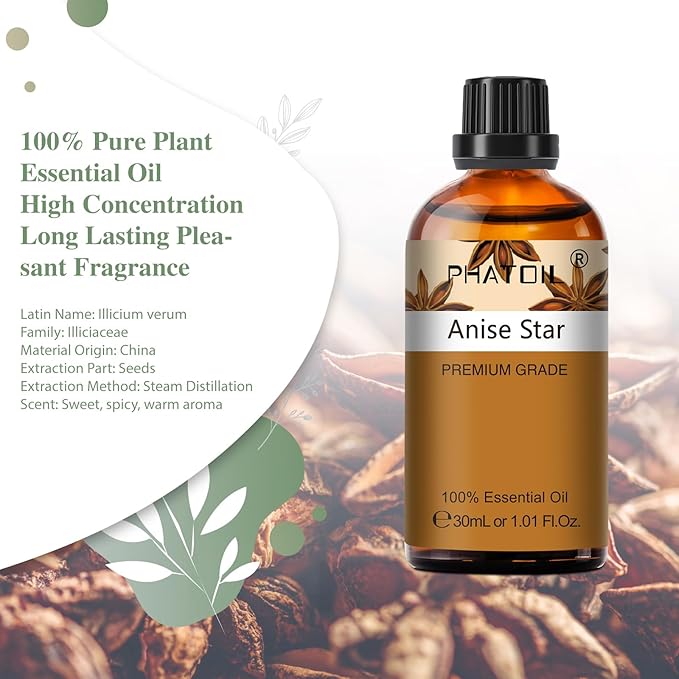 Anise Star 1.01fl.oz Essential Oil, PHATOIL Pure Aromatherapy Oils for Diffuser, Humidifier, Perfect for DIY Soap, Candle, Bath Bombs Making(30ml)