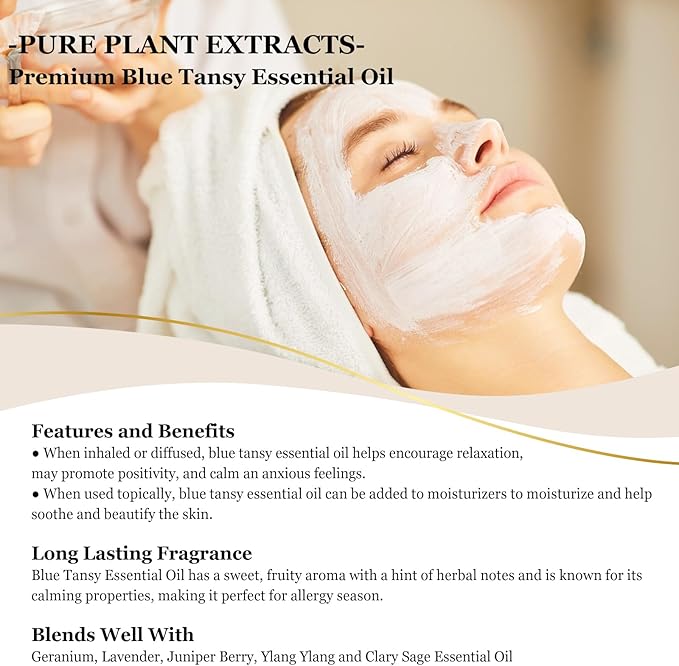 - Blue Tansy essential oil has a distinguishingly sweet, herbaceous and floral aroma with a medium consistency, and comes in a rich, cerulean blue colour that is loved by many.