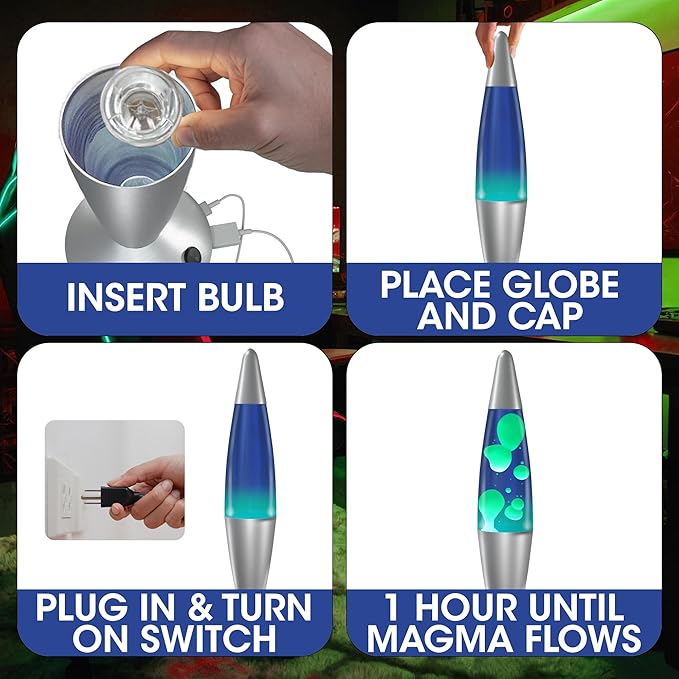 - GORGEOUS LIQUID LAMP- ENHANCE THE AMBIENCE OF ANY ROOM: Turn the lights off and be amazed at the magical qualities of this lamp. The light illuminates the beautiful wax in the lamp, and as it heats it up, the wax floats to the top and then slowly sinks back down. The wax keeps rising and falling, changing colors, creating mesmerizing shapes, and turning any room into a magical wonderland.