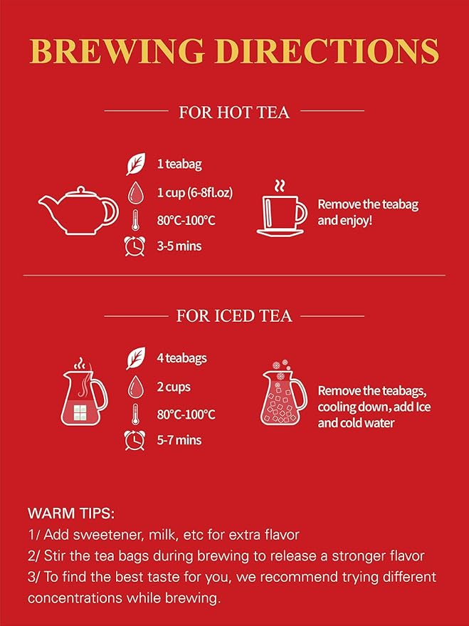 - [HEALTHY BLACK TEA] - Black tea is naturally rich in antioxidants, polyphenols, amino acids, and has a wide range of health benefits. Brew as a hot tea or pour over ice for a refreshing iced tea drink.