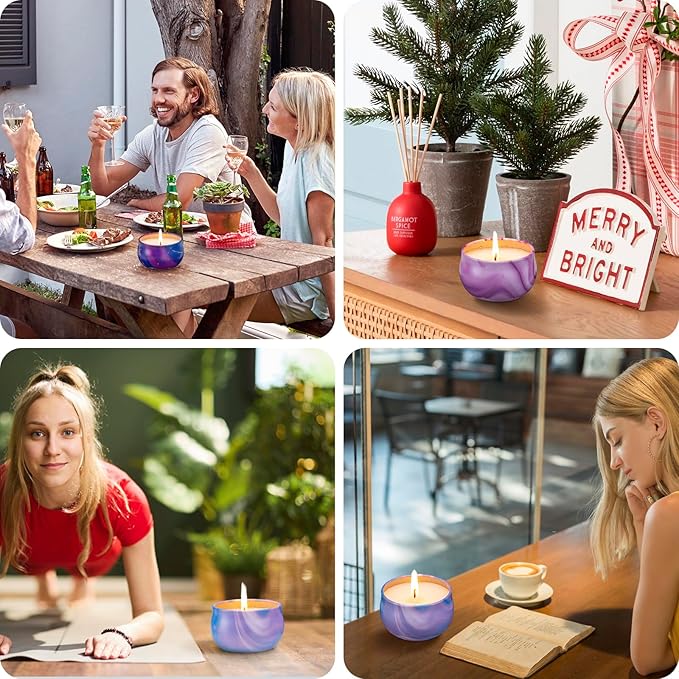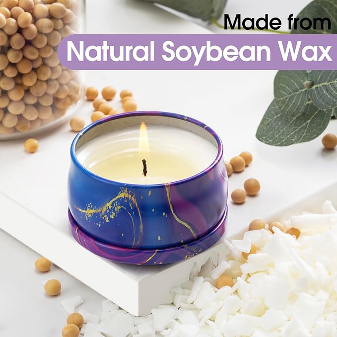 - Long-lasting Time: The essential oil candles contain 2.5oz of net wax in travel tins. Each candle burns for up to 12 hours, and a complete set includes 3 tins, providing approximately 72 hours of burn time. Despite their compact size, our candles offer a long-lasting burn, effectively reducing stress and uplifting anyone's mood