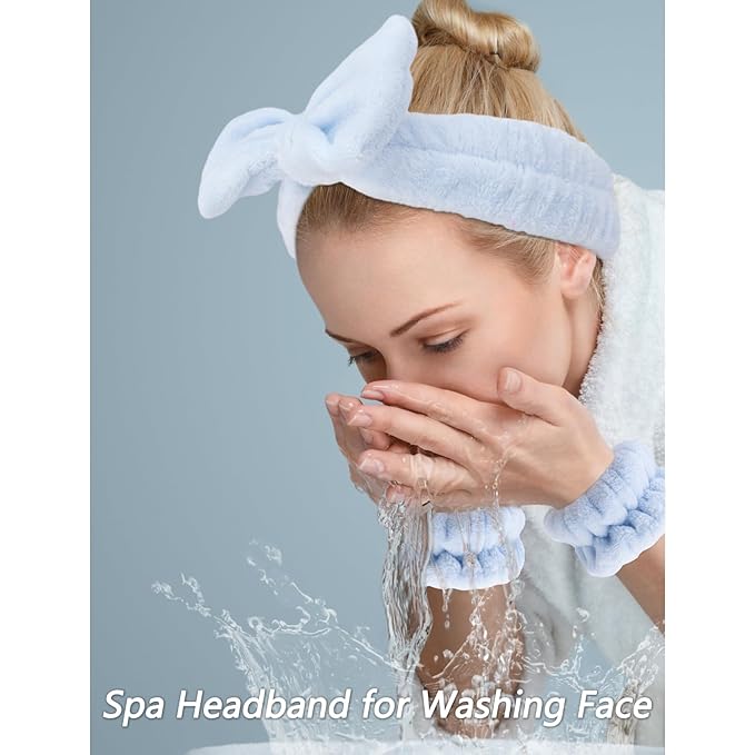 VELSCRUN 6 Pack Spa Headband, Makeup Headband, Face Wash Headbands, Skincare Headbands, Blue Sponge Hair Band Bow Tie Spa Head Band for Washing Face Wristband Set Hair Accessories for Women Gifts