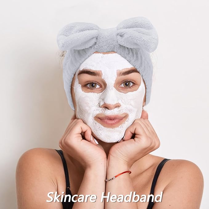 VELSCRUN 6 Pack Spa Headband, Makeup Headband, Face Wash Headbands, Skincare Headbands, Grey Sponge Hair Band Bow Tie Spa Head Band for Washing Face Wristband Set Hair Accessories for Women Girls