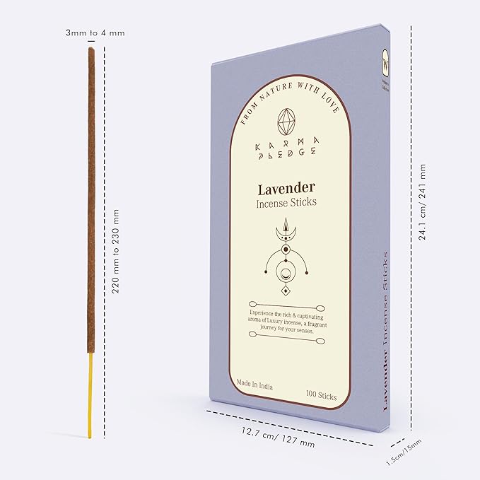 Lavender Incense Sticks, Organic Hand Dipped 100 Sticks with Natural Herbs & Aromatic Ingredients, Burn Time 45 to 60 Minutes, Incense for Positivity, Yoga, Meditation, Relaxation, Spiritual Gift
