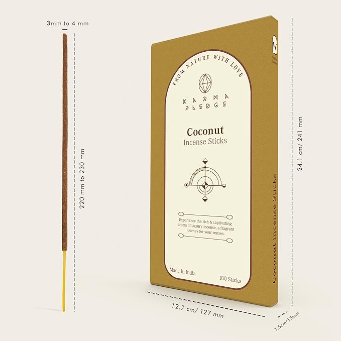 Coconut Incense Sticks, Organic Hand Dipped 100 Sticks with Natural Herbs & Aromatic Ingredients, Burn Time 45 to 60 Minutes, Incense for Positivity, Yoga, Meditation, Relaxation, Spiritual Gift