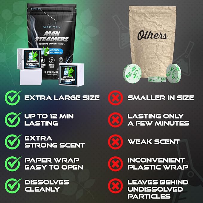 - Strong Scent: Our shower steamers are infused with powerful eucalyptus and essential oils, providing a strong and invigorating aroma that fills your shower with a refreshing scent