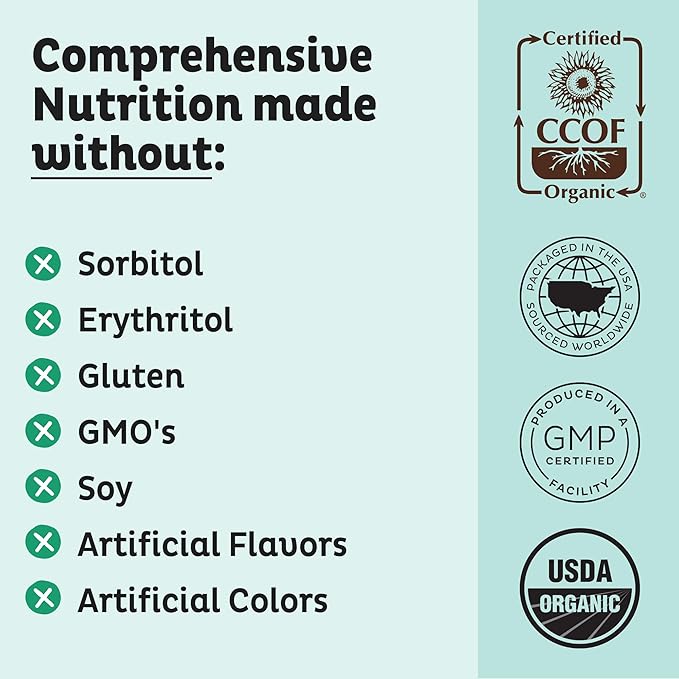 - Responsibly Sourced: Nearly every ingredient is certified organic and free of gluten, dairy, soy, hormones, artificial sweeteners, colors, and GMOs. Made with USDA and CCOF certified ingredients.
