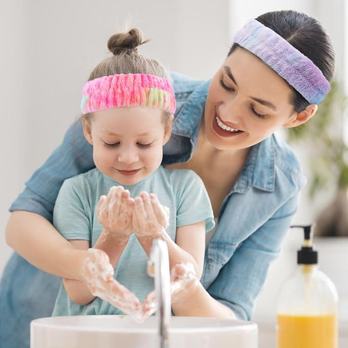 - Different usages: It’s easy to use, you just need slide puffy spa headband to neck and then pull up headband until it align with hairline, it’s done! These dye tie color facial headbands are useful to ladies and girls when doing spa, sports, yoga, face-washing, makeup and taking a shower.
