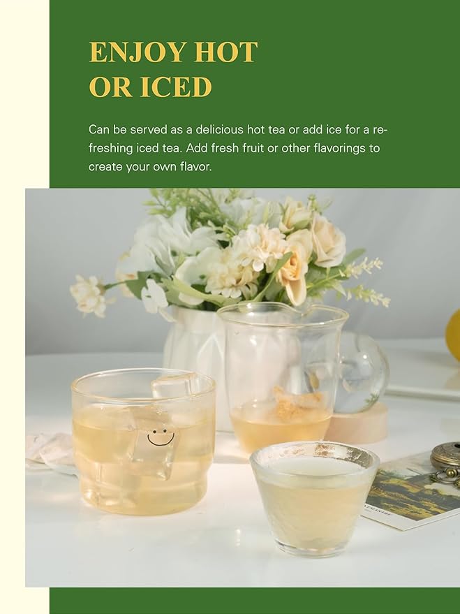 - [100 COUNT ECO-CONSCIOUS TEA BAGS] - Our premium tea bags are made from biodegradable non-GMO plant fiber. Packaged in a high-quality resealable foil-lined kraft pouch to keep tea fresh. No string and no tag. No extra waste - just healthy & delicious tea!