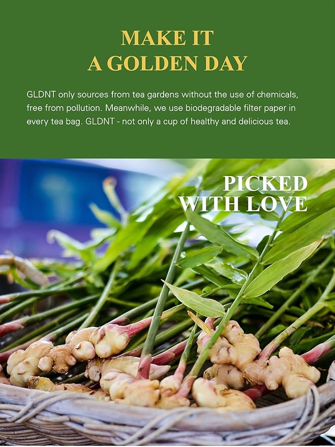 - [GREAT TASTE & FLAVOR] - GLDNT organic ginger tea is made from natural ginger roots, carefully hand-picked at their peak of freshness. It undergoes a rigorous drying and grinding process to give a distinct, warm, and spicy flavor.