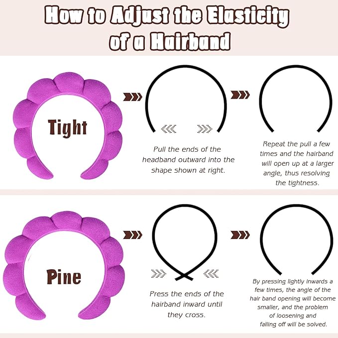 - SPA HEADBAND and WRISTBAND MATERIAL: Patent No.: US D1018980 S. Spa headband and wristband set is the perfect pink gift solution.Bubble Spa headband for women the sponge lining used and the terry cloth covering the surface. These skincare headbands have a strong water absorption function and can be used when you are washing your face, skincare or makeup. The wristbands are made of quality coral fleece.And wristbands also have good elasticity, can be stretched to fit your wrist better