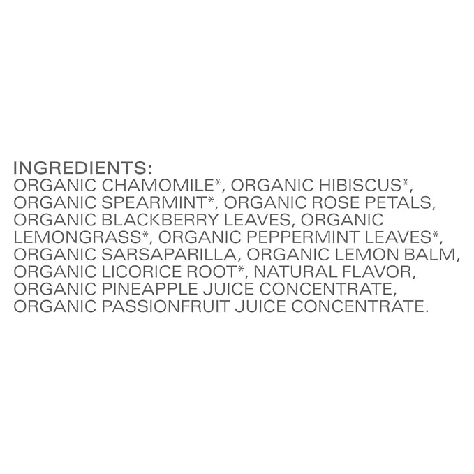 - TAZO CALM CHAMOMILE: This elegant, flavorful tea is a soothing blend of chamomile and hibiscus flowers, spearmint, rose petals, lemongrass, blackberry leaves, and peppermint