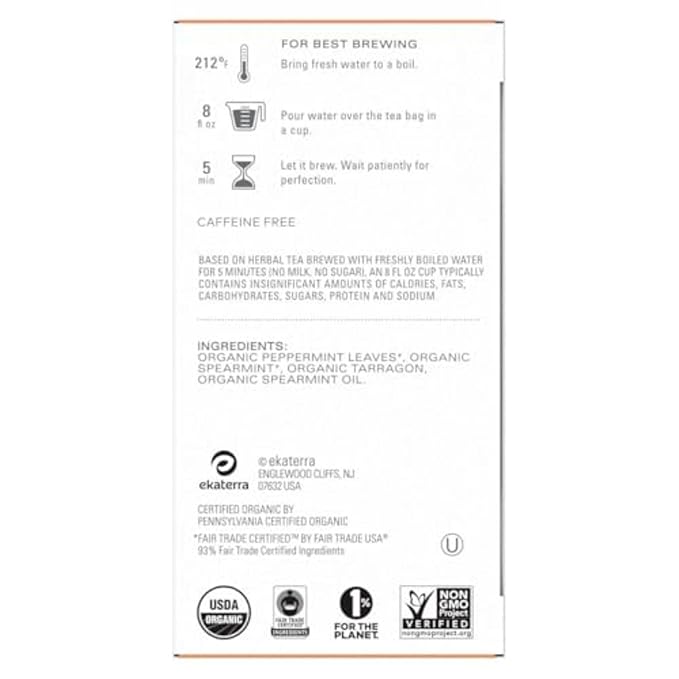 - TAZO REFRESH MINT: This tea offers an herbal tea infusion of spearmint tea, peppermint tea, and a warm hint of sweet tarragon