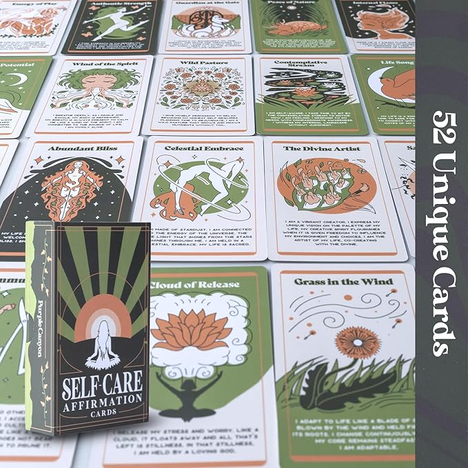 PURPLE CANYON Self Care Affirmation Cards | Positive Affirmations Cards for Mindfulness and Meditation | Motivational Gifts for Women and Men | 52 Card Deck for Encouragement