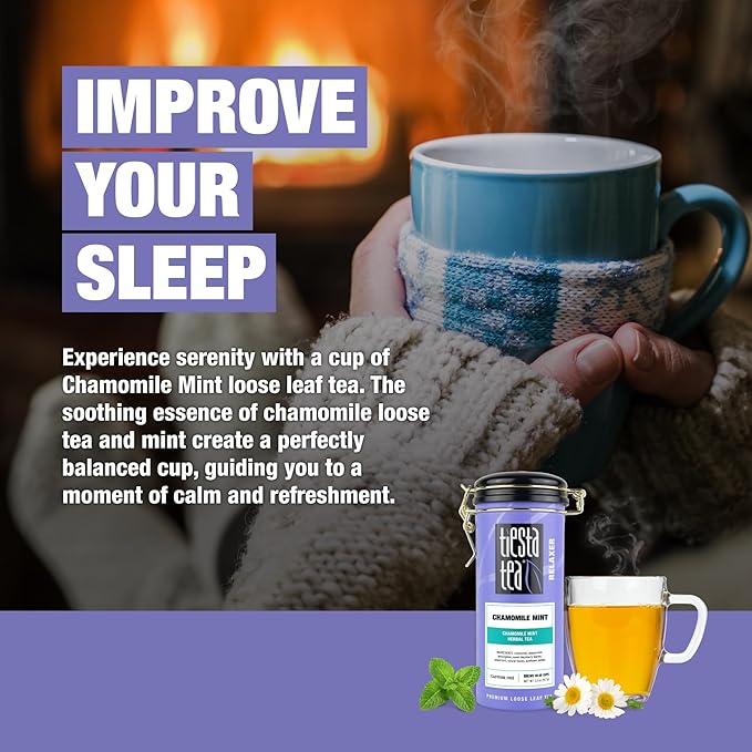 Tiesta Tea - Chamomile Mint, Loose Leaf, Chamomile Mint Herbal Blend, Premium Blend, Caffeine-Free Herbal Tea, Makes Hot or Iced & Brews Up to 50 Cups, 2oz Refillable Tin Can