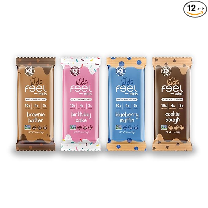 FEEL Kids Protein Bars Minis | Variety Pack | 10g Plant Protein | 100 Calories | No Added Sugar | Daily Veggies | Gluten Free, No Nuts, No Soy, No Dairy, No Grains (Pack of 12)
