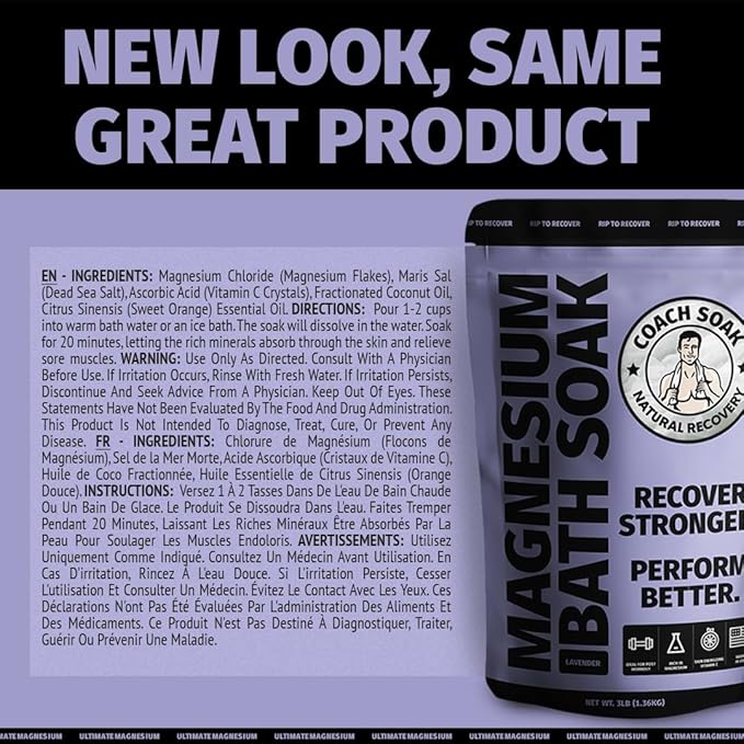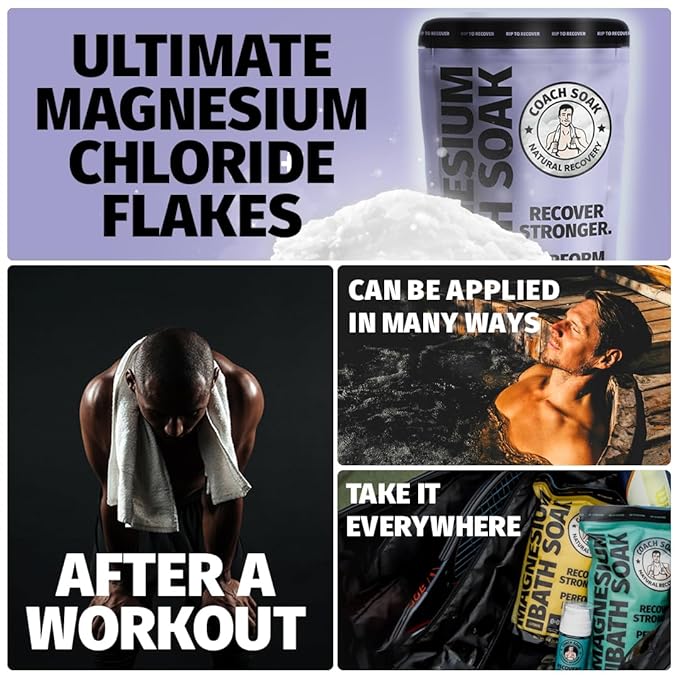 Coach Soak Recovery Bath Soak - Alternative to Epsom Salt Bath Soak - Fast-Absorbing Pure Magnesium Flakes with 21 Minerals, Bath Salts & Essential Oils - 15 lb (5 Pack) - Lavender