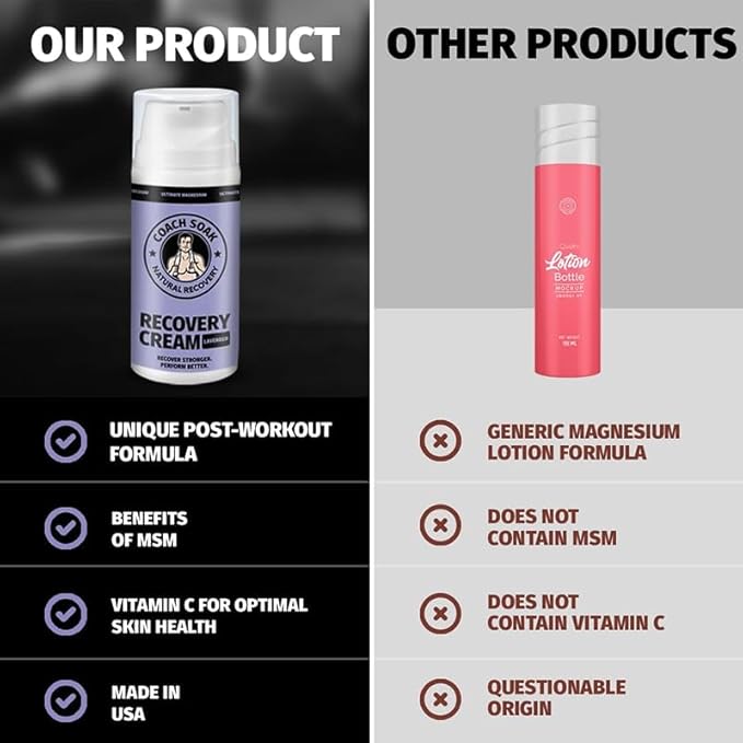 - Coach Soak's Magnesium Lotion, designed for athletes, offers quick absorption directly onto the skin. Experience the benefits of magnesium chloride with a menthol sensation. Same quality, new packaging! Your purchase includes a copy of our ebook "How Magnesium Aids Post-Workout Recovery".