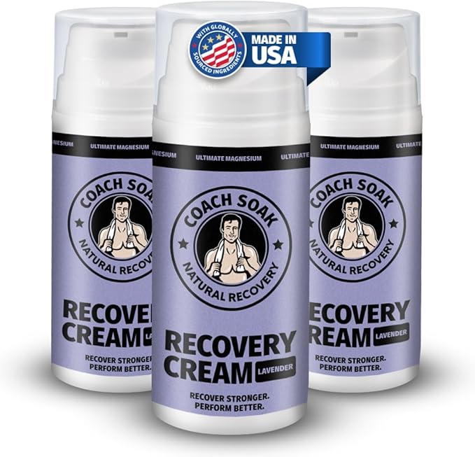Coach Soak Topical Magnesium Lotion with MSM - Natural Recovery Cream with Magnesium Chloride, Vitamin C & Menthol, Rapid Absorption & Relaxation for Sore Muscles, Lavender (3 Pack, Total 10oz)
