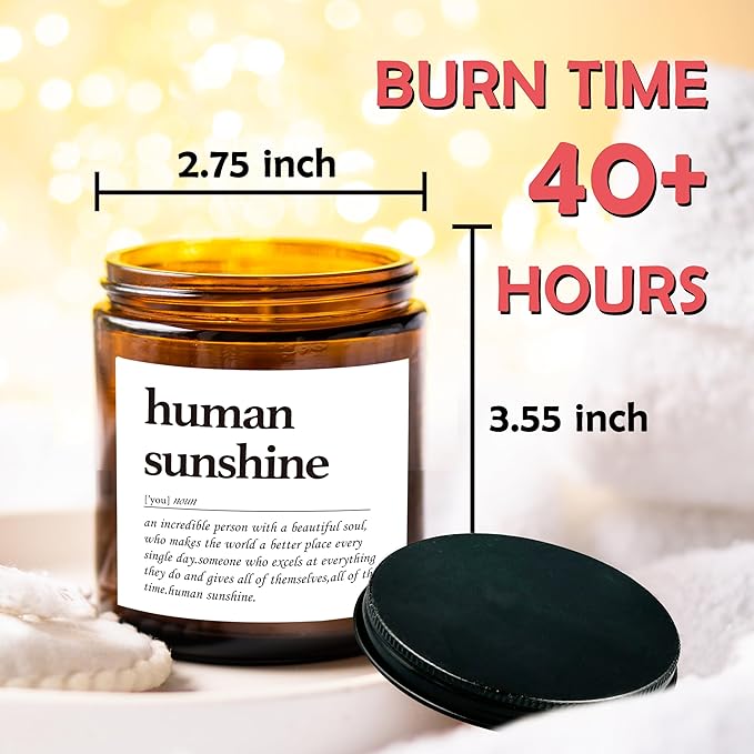HIWX Human Sunshine Scented Candle - Appreciation Gifts for Teachers & Coworkers, Inspirational Thank You Christmas Soy Jar Candle, Lavender, Vetiver, Sandalwood Scented 8oz Holders