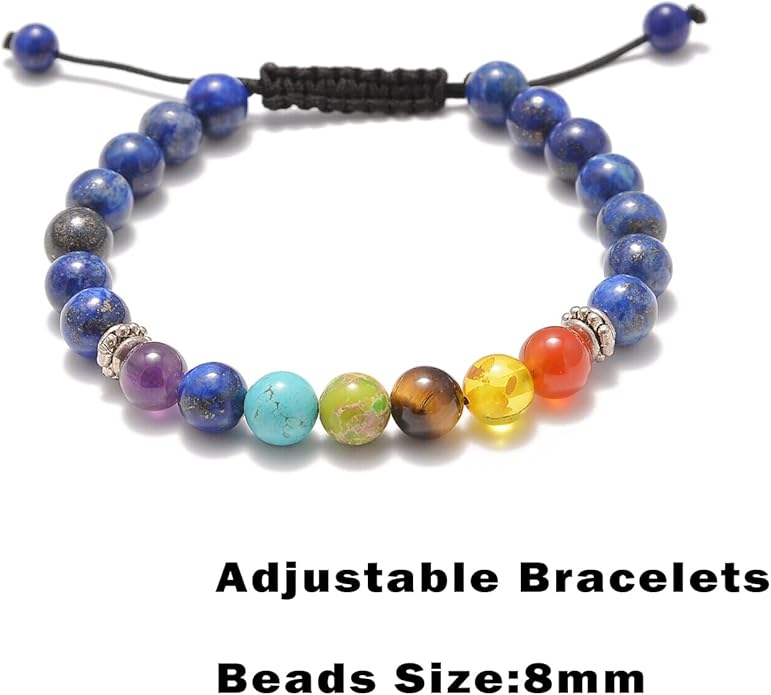 • This bracelet is perfect for loves. The elastic ones are for women, the adjustable ones are for men. Each bracelet has 7 different beads representing 7 Chakra Healing Crystal.