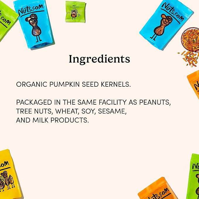 Nuts.com – Organic Pumpkin Seeds – 2 Lb Bag, No Shell Pumpkin Seeds Organic, Healthy Snack for Adults & Kids, Rich in Protein, Fiber, Calcium & Potassium – Keto Friendly, Vegan, Gluten-Free & Kosher Pareve
