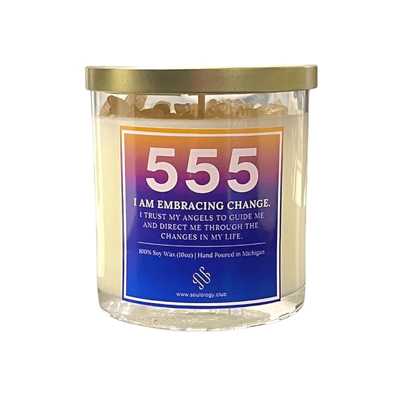 555 Angel Number Candle, 10oz, Crystal candle, 100% Soy Wax & Phthalate-Free Fragrance candles, Gifts candles for women, Angel Number Gift, Healing Candle, Spiritual Candle