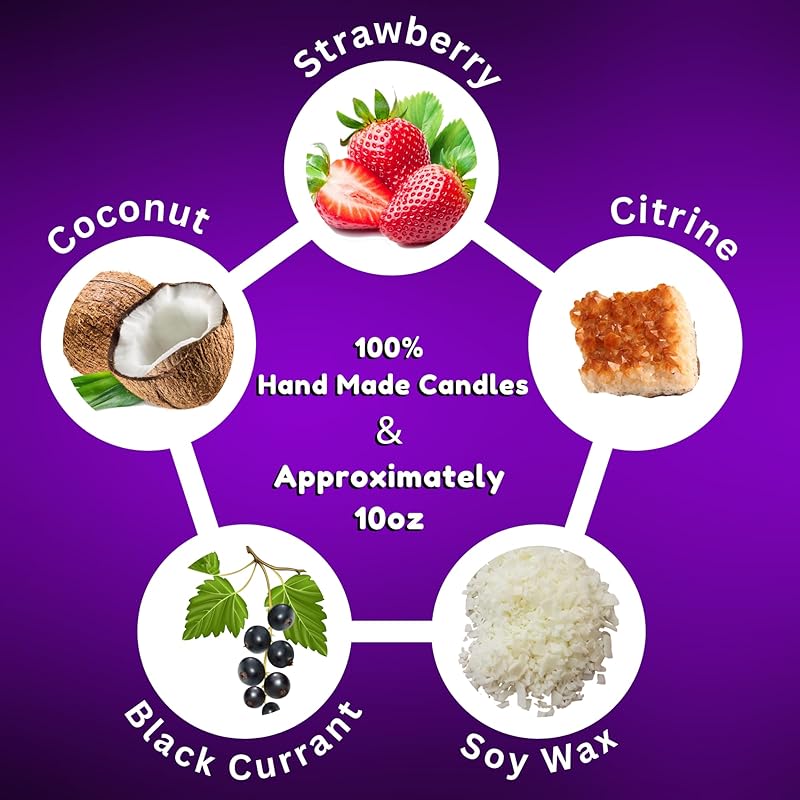 - 100% soy wax with fragrance oils added for scents Our candles are 100% handmade, so each may be slightly different in appearance and colour Each scented candle is approximately 10oz Rose Gold Metal Lid Do not light for more than 4 hours Your order will come with one candle