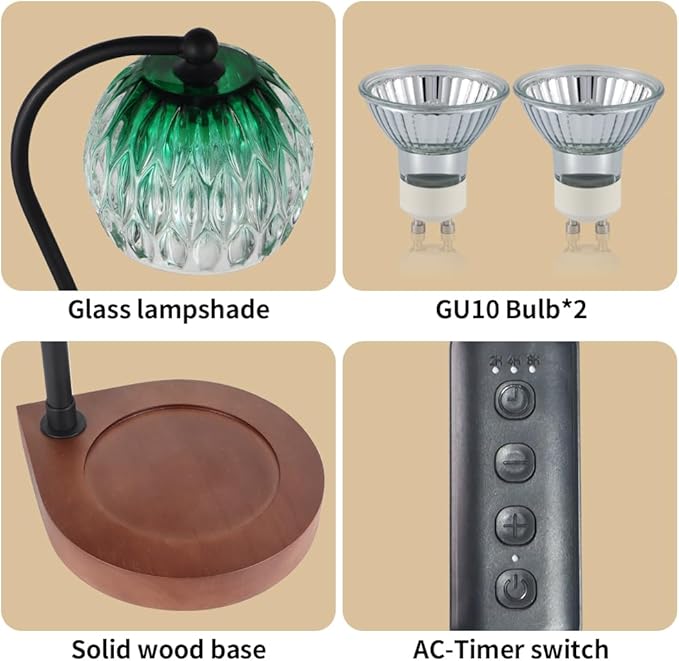 - ✿Timer and Brightness Adjustable✿ Electric candle warmer uses a 50W GU10 halogen bulb to melt candles and wax from top to bottom for fast and efficient scenting. With the dimmer control of the Aesthetic Home Decor Lights Candle Warmer, you can adjust the melting speed. The brighter the environment, the faster it melts. In addition, you can set the 2/4/8 hour off function of this candle warmer lamp with timer.