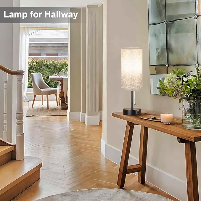 - 4. Plug and Play Table Lamp - Package included a non-flicker FREE E26 led light bulb (worth $10), a install-free grey flaxen fabric shade, a stable lamp body and classic black metal base. Put all together for a minimalism lamp is really perfect to decorate anywhere of your house. An ideal USB nightstand lamp for bedroom, guest room, living room, study room, kids room for girls and boys, office room, desk, etc