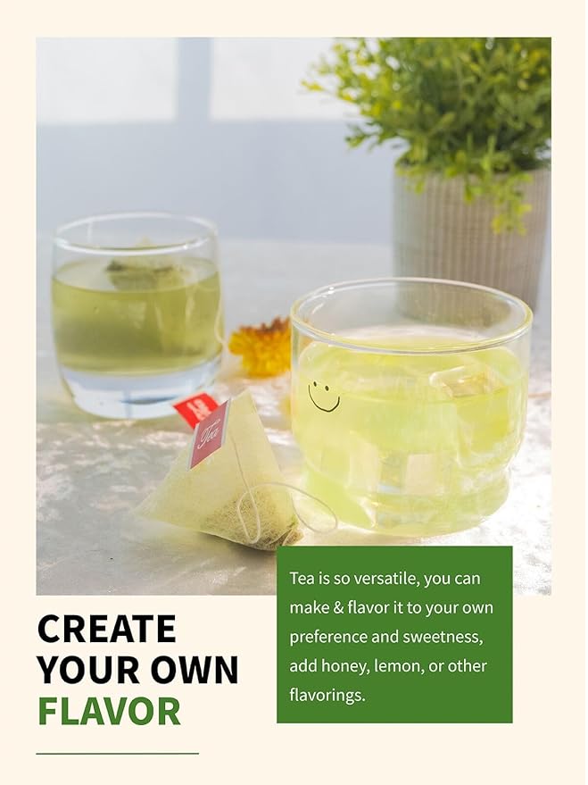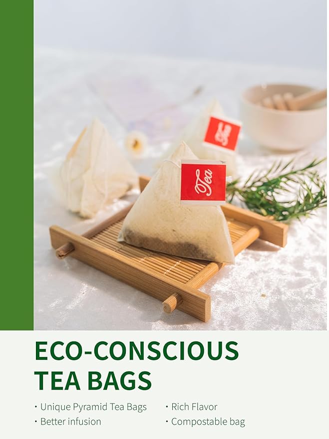 - [60 COUNT ECO-CONSCIOUS TEA BAGS] - Our premium tea bags are made from corn fiber, the tea bags are unbleached and compostable. Pyramid-shaped tea bags for a fresher and more delicious tea.