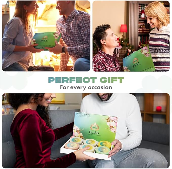 Shower Steamers Gift Set – 6 Aromatherapy Shower Bombs with Essential Oils – Natural Spa Fizzies for Women & Men – Self-Care Kit for Relaxation, Stress Relief & Home Spa – Bliss Collection