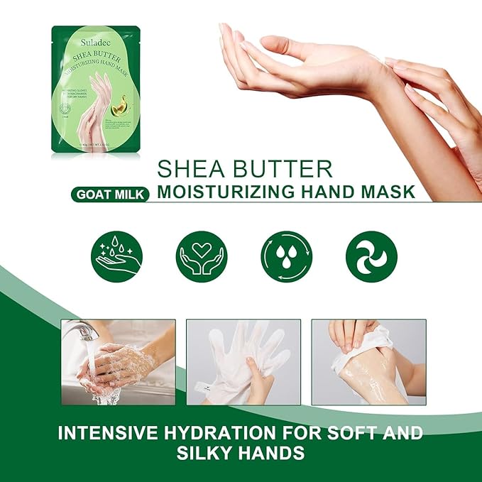 SULADEC Moisturizing Hand Mask with Shea Butter and Goat Milk, Hydrating Hand Masks for Dry Cracked Hands, Dry Skin Moisturizer for Soft and Smooth Touch Hands - Men Women - 5 Pairs