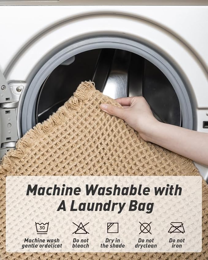 - Upgraded Waffle Desgin: This boho bath mat is power-loomed with upgraded yarns-Integrating decoration and durability. The heavier and thicker threads are applied to make sure the pattern will be more solid and compact- NEVER OUT OF SHAPE!