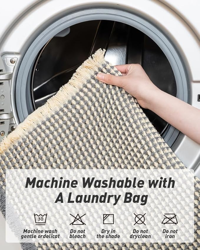 - Easy to Maintain: Machine washable bathroom rugs provide convenience in your daily life. Recommend gentle mode,cold water. Or just shake the dust off from the bath rugs for simple cleaning.