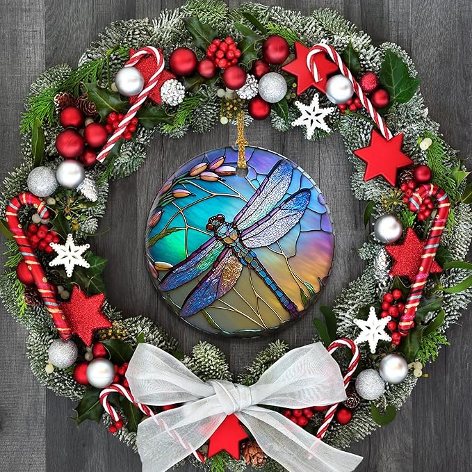 Dragonfly Christmas Ornaments, Touber Christmas Hanging Ornament, Christmas Tree Ornaments, Holiday Decor, Gifts for Dragonfly Lovers, Dragonflies Theme Gift - Pattern B
