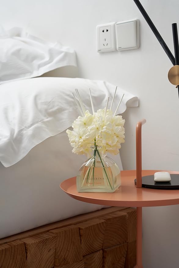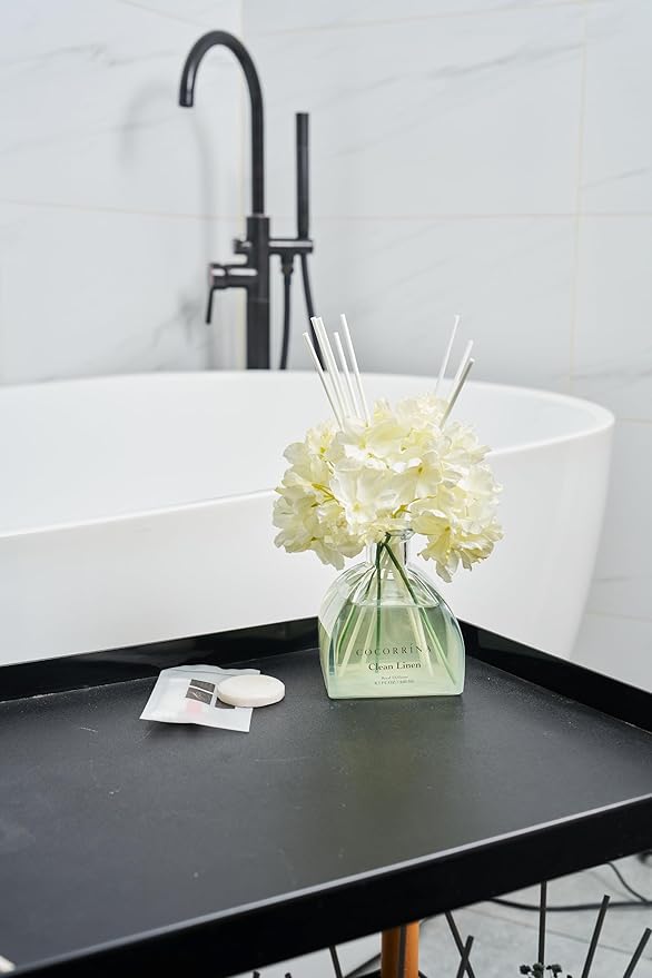 COCORRÍNA Reed Diffuser - 8.5 Oz Clean Linen Reed Diffuser with 8 Sticks for Home Bathroom Shelf Decor (Simple Luxe Collection)