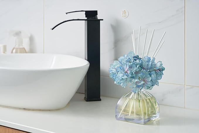 COCORRÍNA Reed Diffuser - 8.5 Oz Cashmere Vanilla Reed Diffuser with 8 Sticks for Home Bathroom Shelf Decor (Simple Luxe Collection)