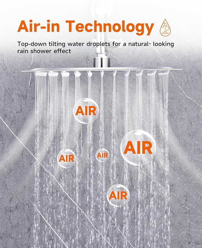 - 【Experience with All Your Senses】Jafeton Experience the ultimate in shower luxury with our high-performance 10" stainless steel rainfall showerhead combo. Immerse yourself in a powerful downpour that will invigorate your senses and transform your shower into a spa-like retreat, just like the scenes in your favorite movies. The whole rain stream will fully encompass your body and can accommodate two adults.